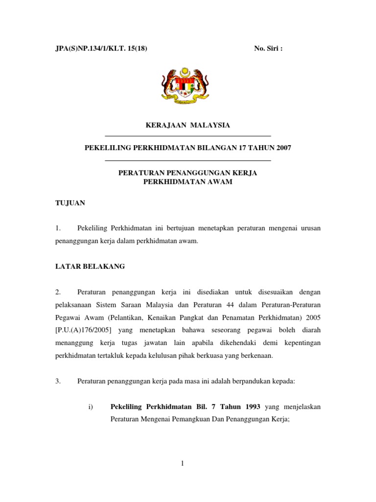 Pekeliling Perkhidmatan Bil 17 2007 Peraturan Penanggungan Kerja Pdf